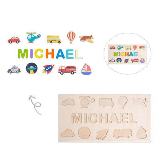 Car Airplane System Personalized Baby Puzzle Wooden Name Puzzle Birthday Gift Children Toy Toddler Baby Shower Gifts