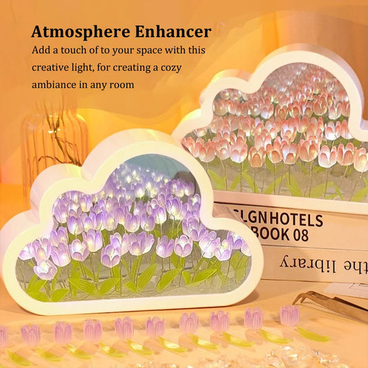 Cloud Mirror Tulip Sea Of Flowers Night Light DIY Handmade Creative Birthday Gift LED Night Light To Send Girls Girlfriends Blue