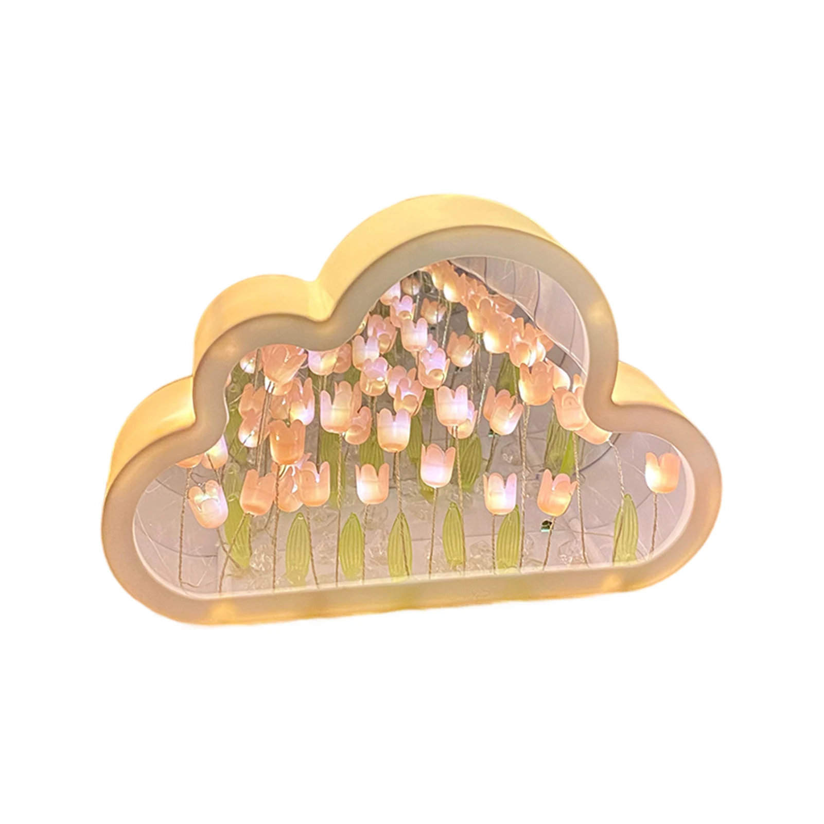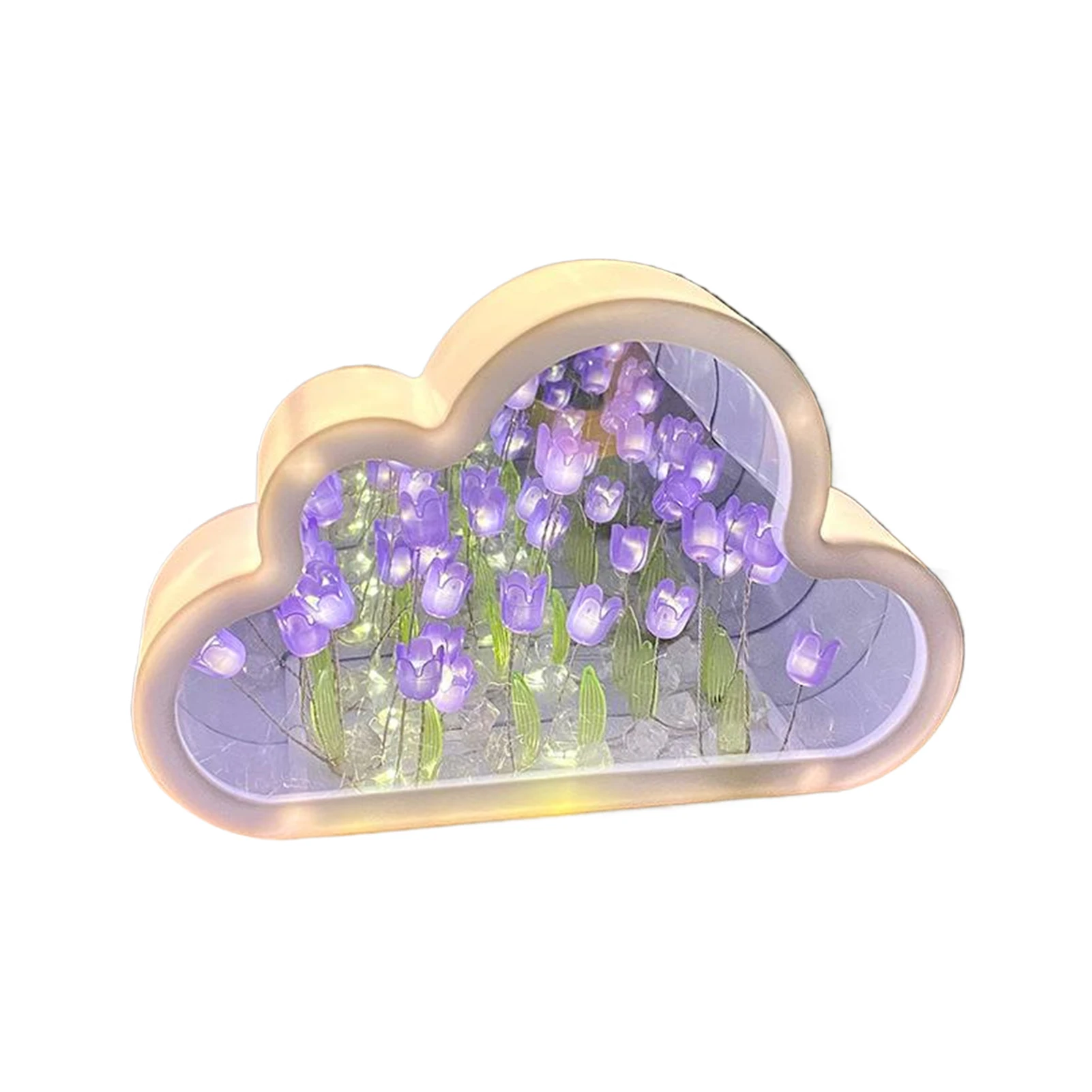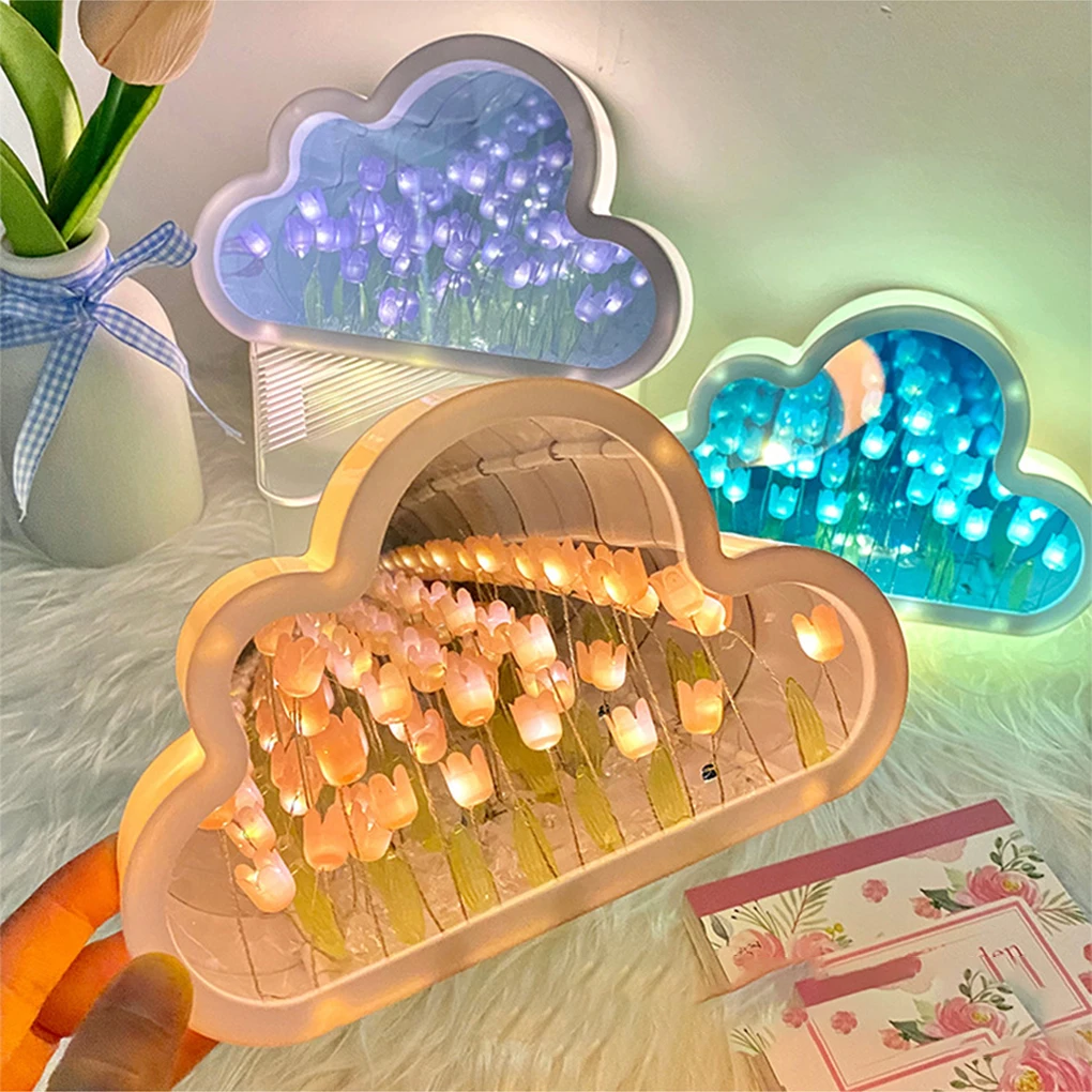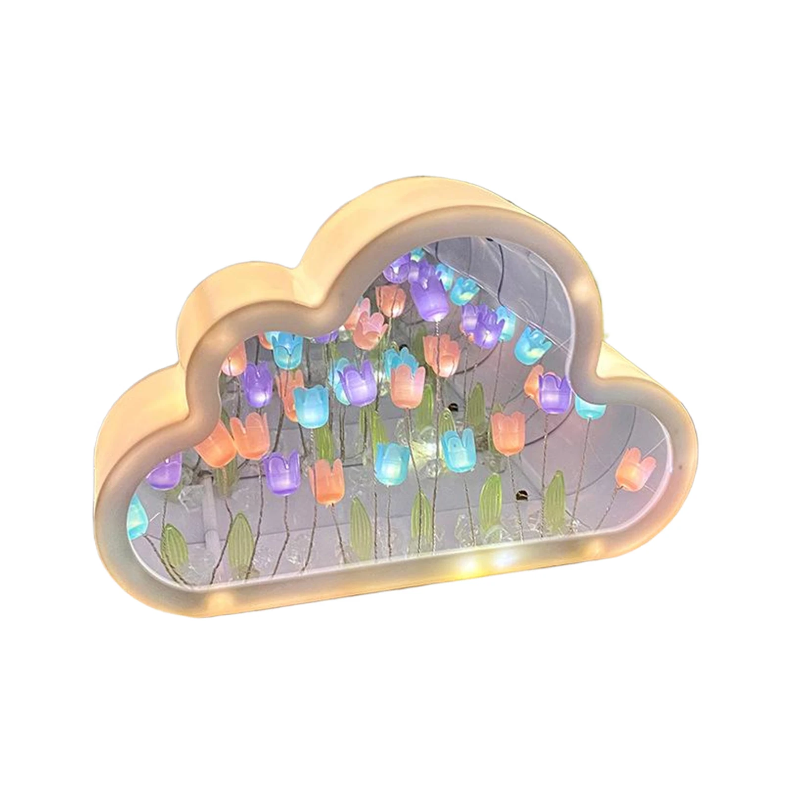 Cloud Mirror Tulip Sea Of Flowers Night Light DIY Handmade Creative Birthday Gift LED Night Light To Send Girls Girlfriends Blue